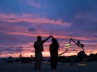 Am Strand: Barfuß im Sand, das tiefblaue Meer vor dir, den Sonnenuntergang im Hintergrund – ein intimer und magischer Moment direkt an der Küste.