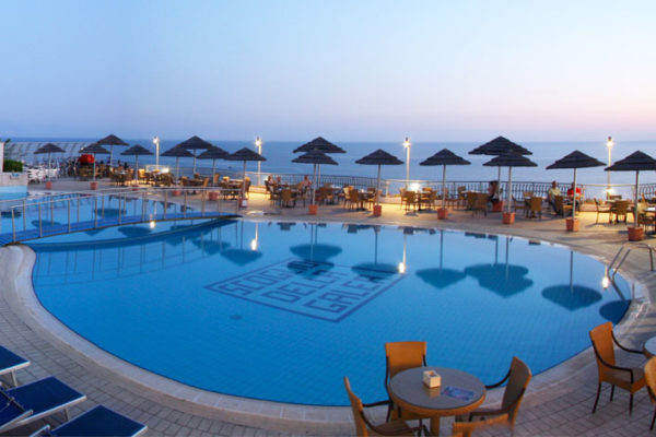 Der Sandstrand ist über eine kleine Straße erreichbar die außerhalb der Anlage liegt. Für jedes Zimmer ist ein Sonnenschirm und zwei Liegen reserviert.Das Pool: