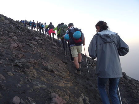 ***A seguito dell’intensa attività del vulcano e delle esplosioni insolitamente grandi del 2019, l’accesso al cratere è chiuso. I percorsi di trekking sono stati riorganizzati di conseguenza. È ora nuovamente possibile camminare fino a 400 m di altezza accompagnati da guide alpine o vulcanologiche autorizzate per osservare le eruzioni vulcaniche.