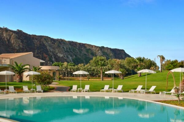 Il resort ha un design moderno che spunta armoniosamente nel verde della natura circostante e si affaccia su una spiaggia privata dal mare cristallino, con vista eccezionale sul vulcano Stromboli e sulle isole Eolie. Protetto alle spalle dal promontorio di Capo Vaticano, si trova a pochi minuti da Tropea.