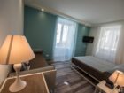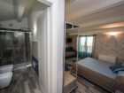 La camera matrimoniale deluxe di 23 mq ubicata al primo piano della villa si affaccia sulla pittoresca e centrale via Libertà e grazie alla presenza di un balconcino, si può godere anche di una bella vista sul mare. Arredata in stile moderno, si caratterizza per l’armonia dei colori, che conferiscono all’ambiente un’atmosfera gradevole e accogliente. Bagno comodo e funzionale completo di bidet con ampia doccia, phon, chiamata d’emergenza e set di cortesia.