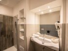 La camera tripla confort di 26 mq, è ubicata al primo piano e si affaccia sul giardino della villa. Improntata ad uno stile moderno e lineare si contraddistingue per la sua atmosfera gradevole e accogliente accentuata dalle tenui sfumature del tortora in armonia con l’insieme degli arredi. La camera è dotata di un comodo bagno con finestra, completo di bidet, ampia doccia, phon, chiamata d’emergenza e set di cortesia.