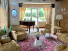 Bellissimi i bagni in porcellana Old England, sobrie le tappezzerie di un rilassante verde malva, raffinate le fantasie floreali dei copriletto e le antiche spalliere in ottone, arricchite da fregi e motivi diversi da stanza a stanza.
