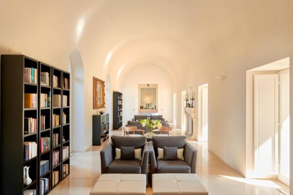 La trasformazione in struttura alberghiera è passata attraverso un’opera di pulizia delle superfetazioni subite dall’edificio negli ultimi 2 secoli. Lo scopo del recupero è stato quello di ridare forza all’antico patio attorno al quale si articolano gli spazi dell’Hotel.