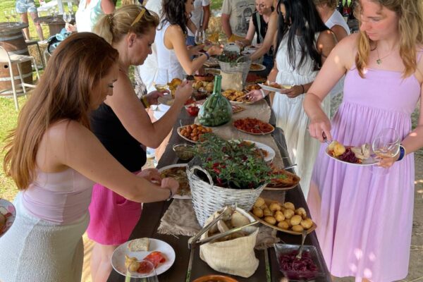 Cena a buffet a base di prodotti locali sotto l'oliveto