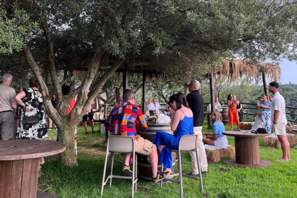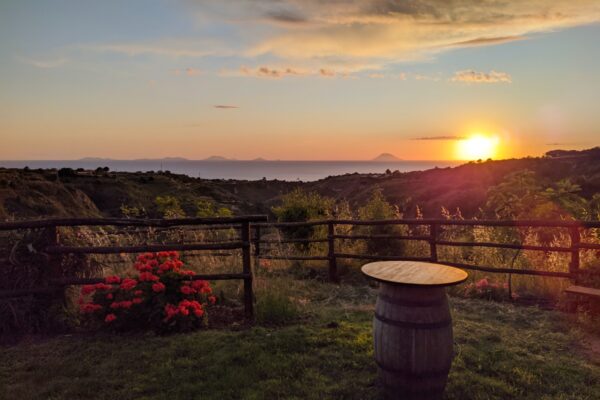 L’apericena si svolge immerso nella natura, in vigna sotto un oliveto, con una romantica vista sul mare e sul tramonto, per un’esperienza autentica, conviviale e suggestiva.