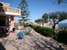- terrazza vista mare e attrezzata di tavolo, sedie, 2 lettini e ombrellone